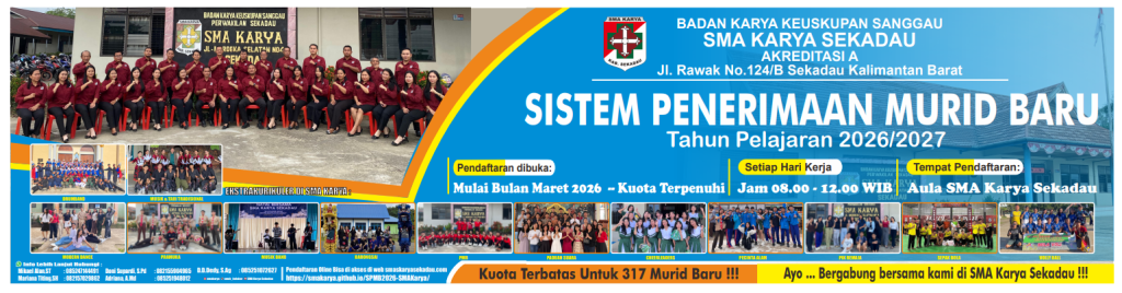 Salam Sejahtera untuk kita semua, Kami mengucapkan selamat datang di Website resmi SMA Karya Sekadau. Dalam perkembangan era globalisasi dan